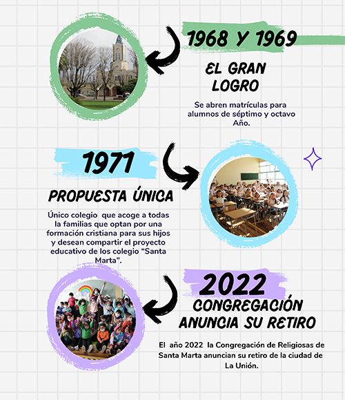 El grupo de Padres no dejó morir sus iniciativas y una vez más en busca de otra Congregación Religiosa que lleve a cabo sus ideales, Es así, como el 10 de marzo de 1961, arriban a la ciudad de La Unión las religiosas de Santa Marta para asumir la conducción del Establecimiento Educacional, que cuenta en ese momento con 107 alumnos, matrícula que año a año crece notablemente, logrando crearse en los años 1968 y 1969 el séptimo y octavo Año.